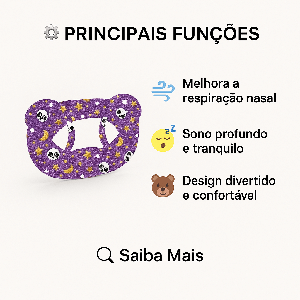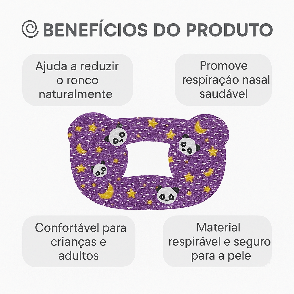- Redução do ronco: mantém a boca fechada e facilita a respiração nasal.