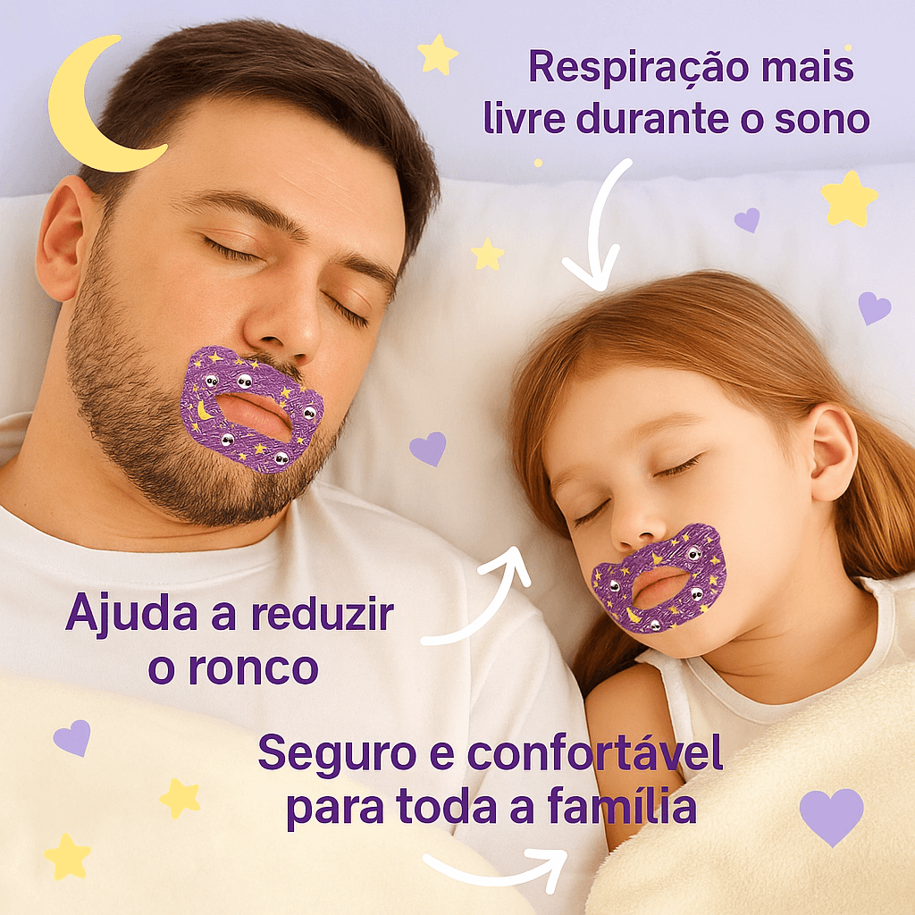 Chega de noites interrompidas pelo ronco! O Adesivo Bucal Anti Ronco ajuda você a respirar melhor e desfrutar de um sono profundo e tranquilo, sem desconforto ou medicação.