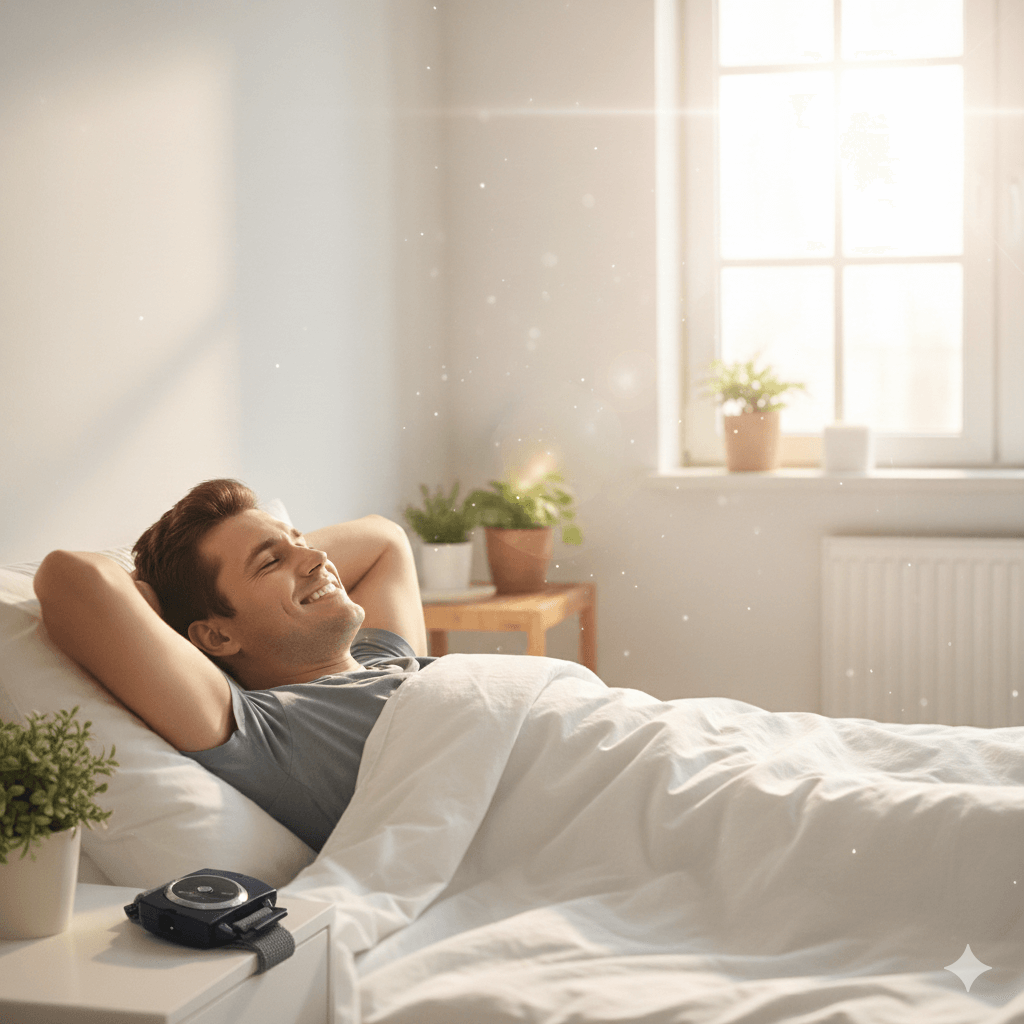 A Pulseira Silêncio Profundo atua diretamente no pulso com estímulos suaves que ajudam a: