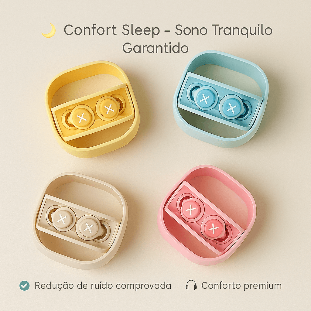 Os Tampões de Ouvido Confort Sleep foram criados para quem busca descanso profundo, conforto e silêncio absoluto. Tenha o sono tranquilo que você merece em casa, no trabalho ou durante viagens.